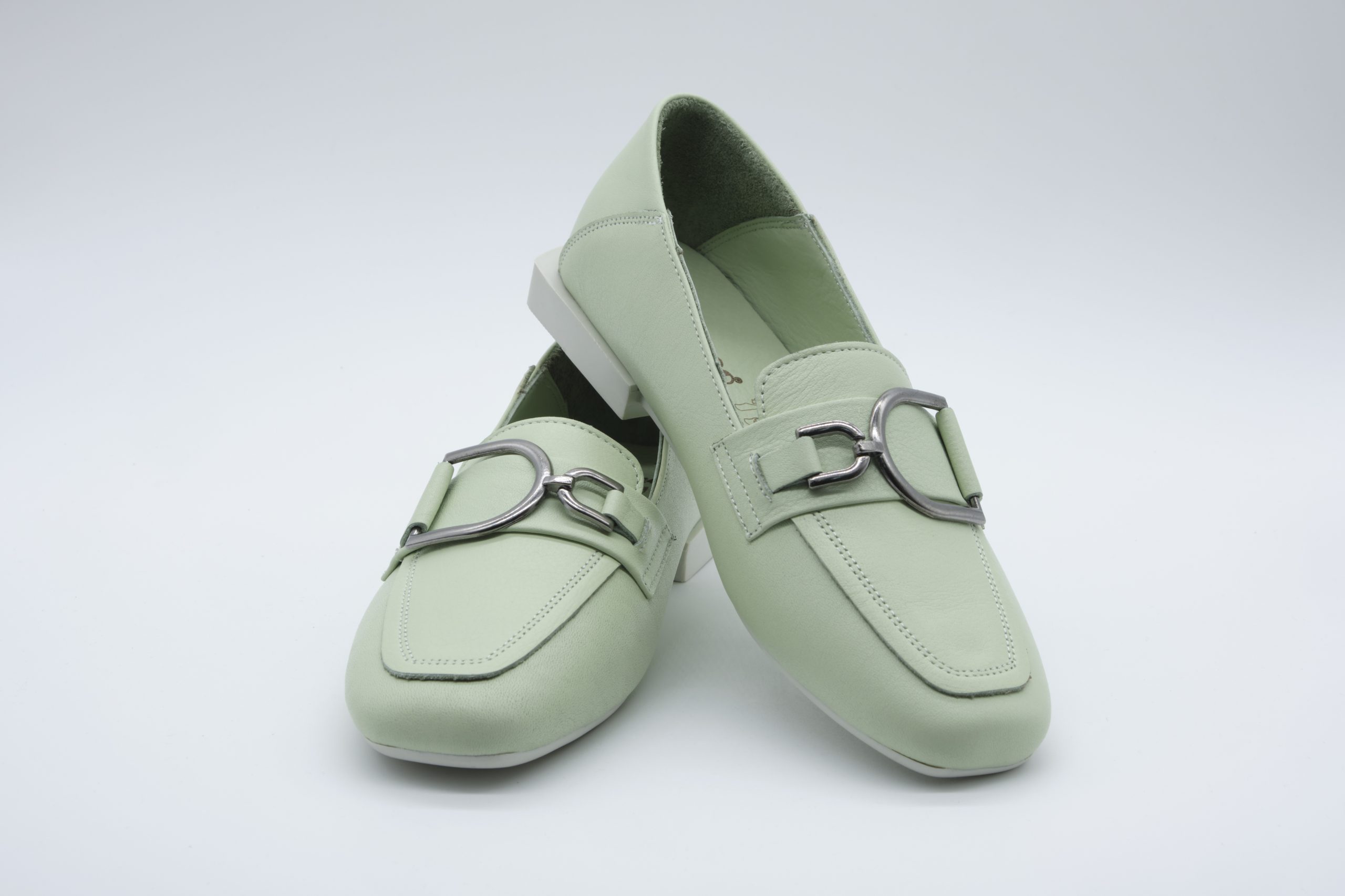 Mocasini confortabili, din piele naturala, cu catarama, culoare verde