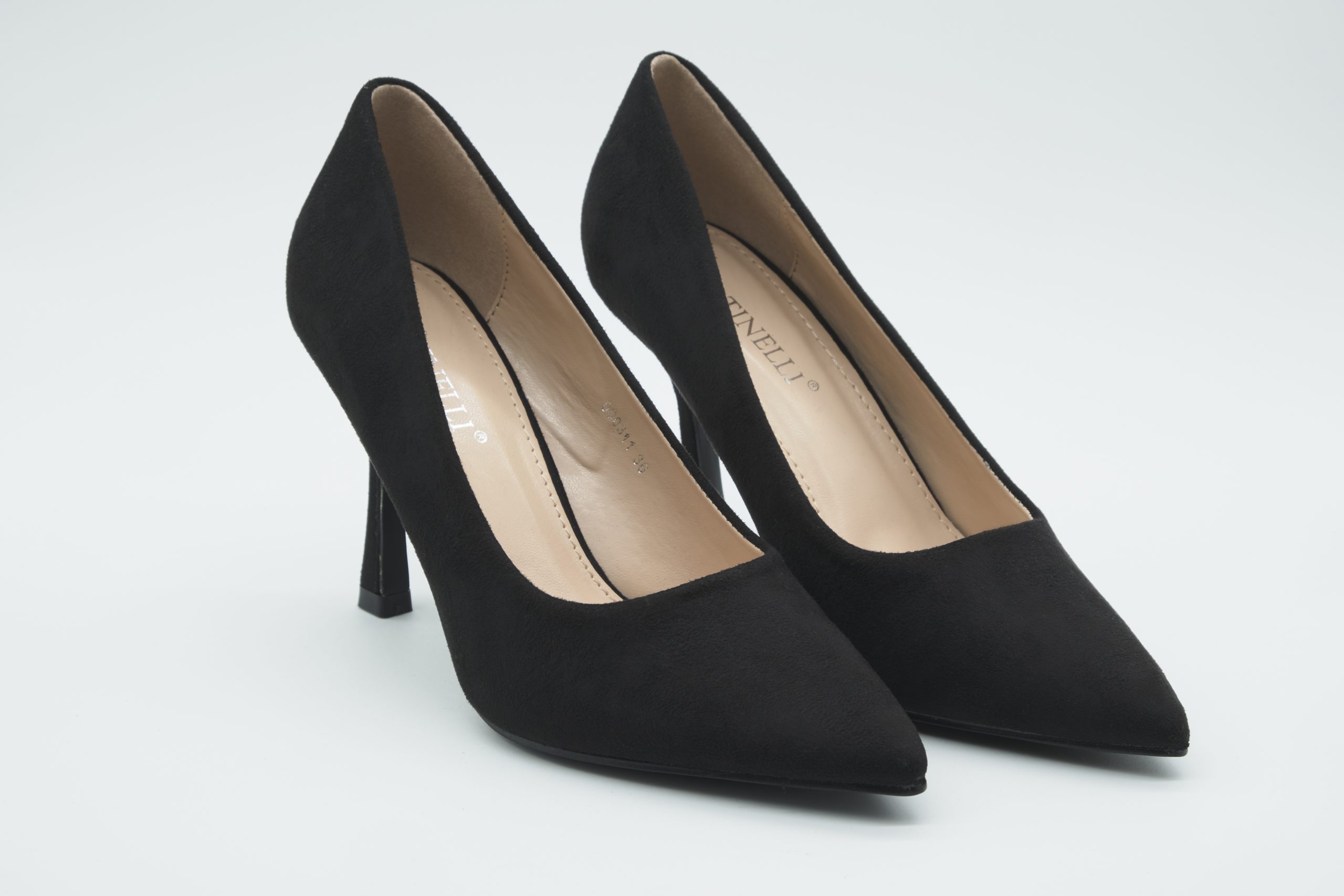 Pantofi sttileto, din piele ecologica, culoare negru/roz, inaltime toc 9 cm