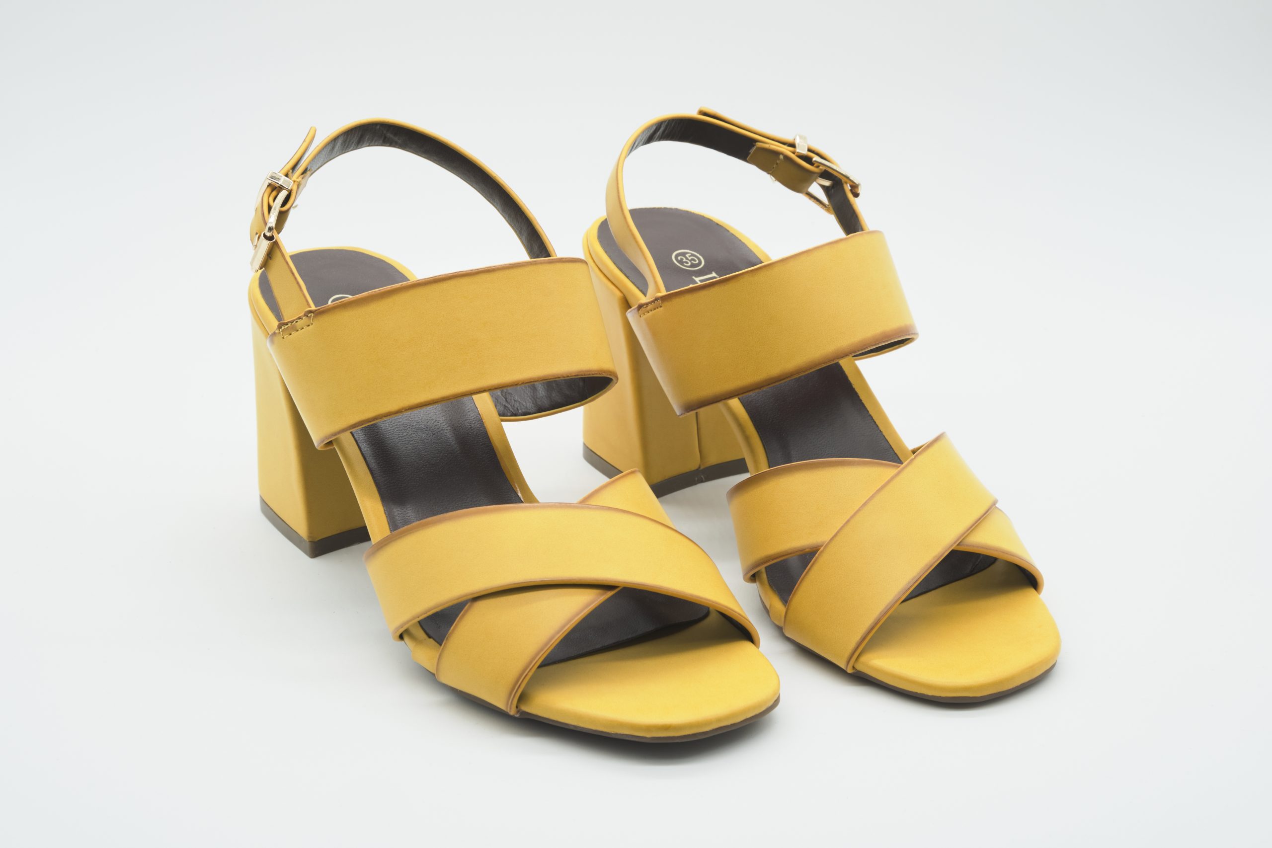 Sandale confortabile de zi, toc gros, culoare galben/verde, inaltime toc 8 cm